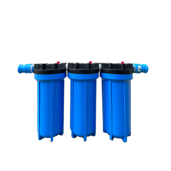 Consiste en tres filtros instalados en línea con carcasas oscuras para evitar la formación de microorganismos en su interior, estos contienen en su interior el siguiente contenido: