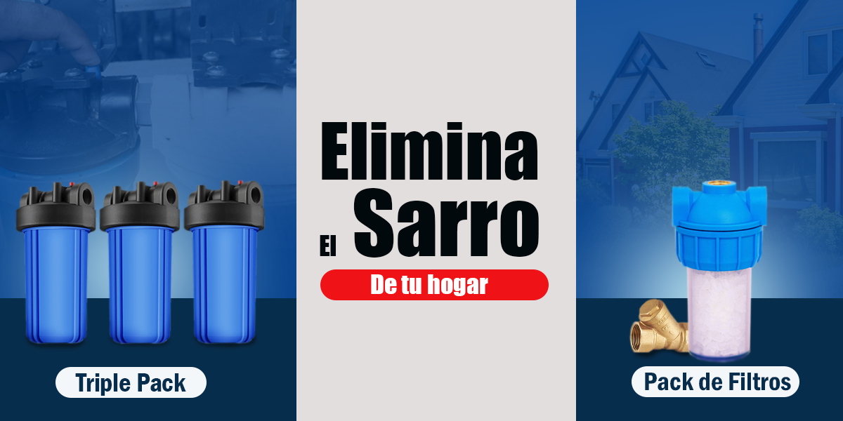 Consiste en tres filtros instalados en línea con carcasas oscuras para evitar la formación de microorganismos en su interior, este producto mejorara la calidad del agua y evitará la formación de sarro dentro de las cañerías y evita su adhesión a los artefactos del hogar.